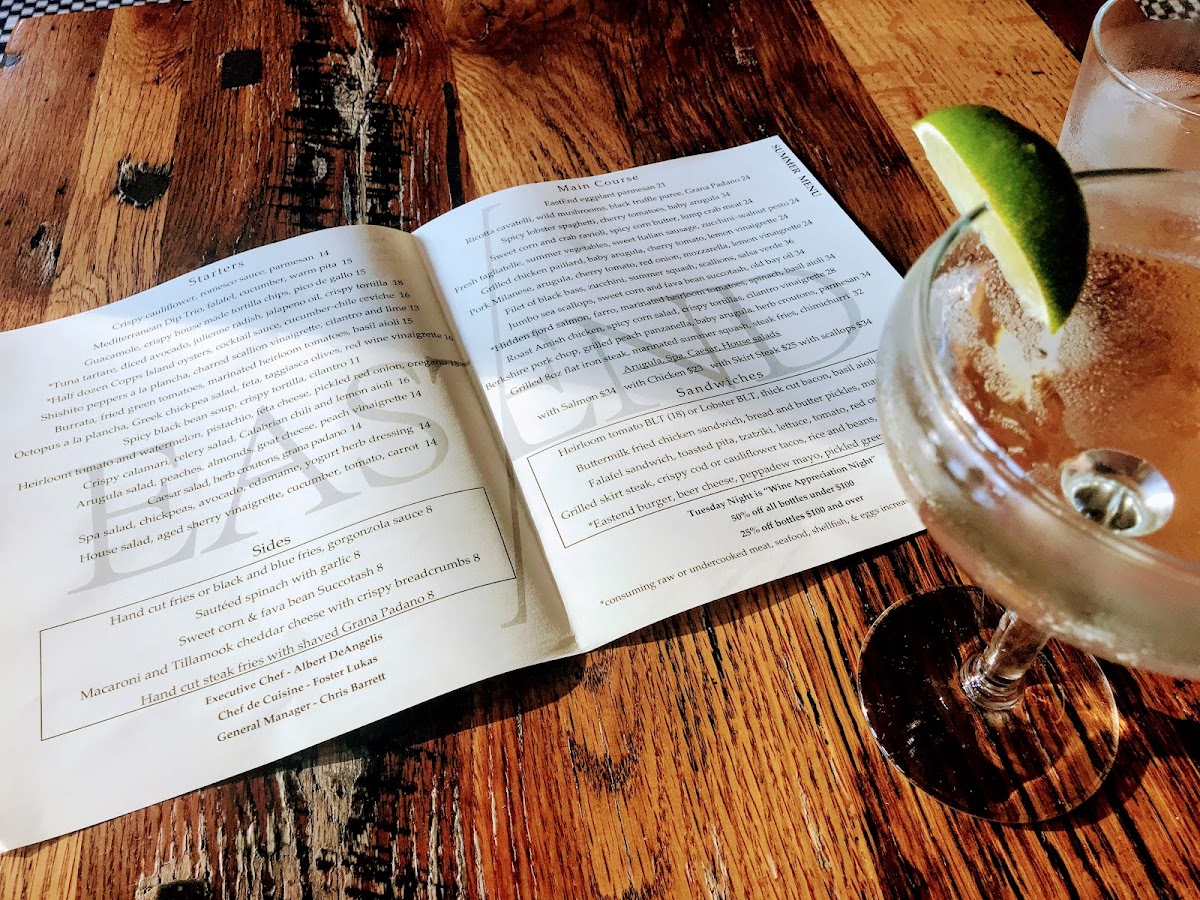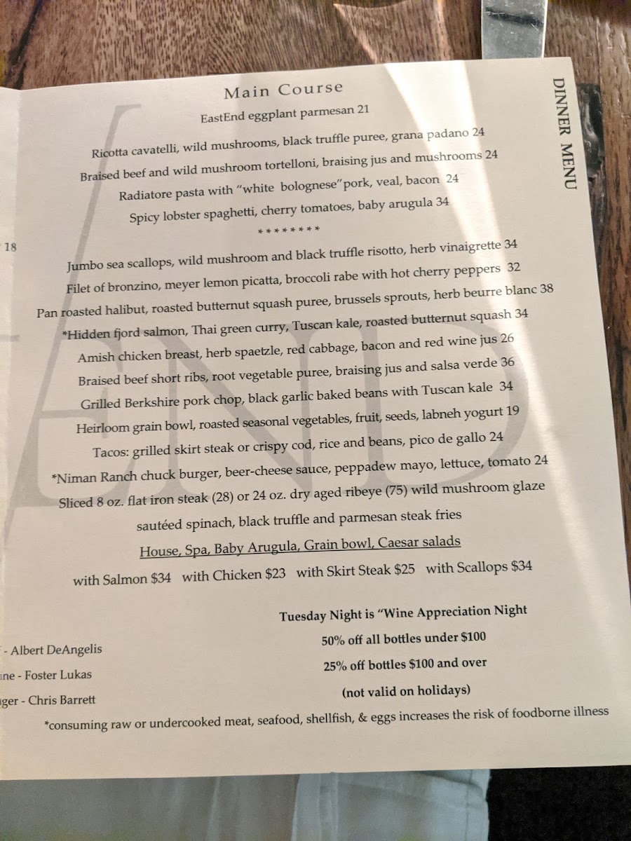 18oz bone in dry aged ribeye, steak fries, red wine sauce.